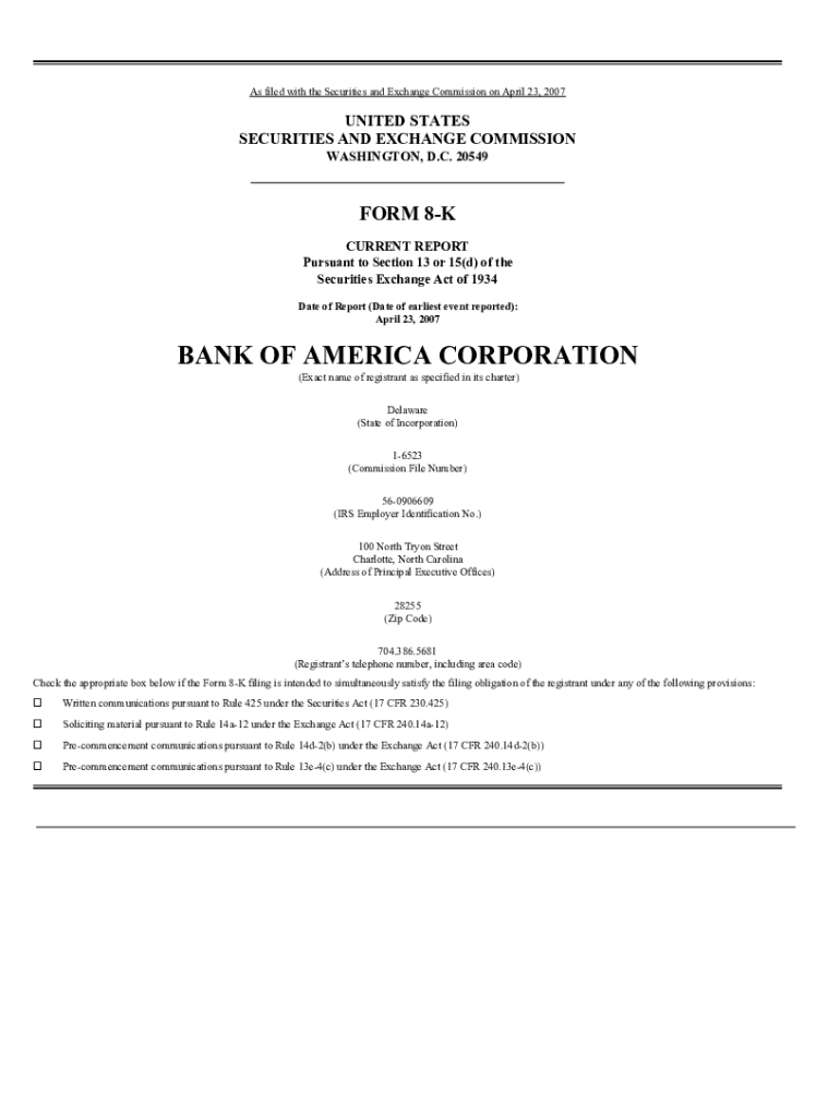 As filed with the Securities and Exchange Commission on April 23, 2007UNITED STATES SECURITIES AND EXCHANGE COMMISSION WASHINGTON, D.C. 20549FORM 8K CURRENT REPORT Pursuant to Section 13 or 15(d)