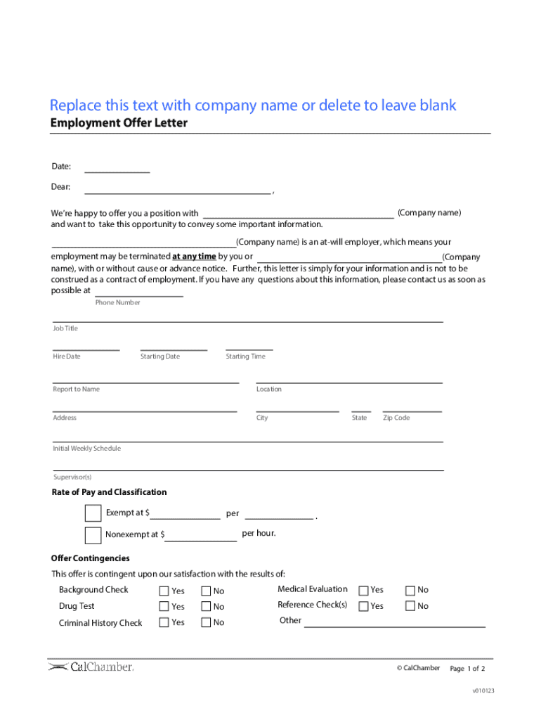 Replace this text with company name or delete to leave blank Employment Offer LetterDate: Dear:, (Company name)Were happy to offer you a position with and want to take this opportunity to convey some