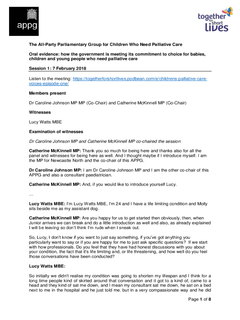 The Allport Parliamentary Group for Children Who Need Palliative Care Oral evidence: how the government is meeting its commitment to choice for babies, children and young people who need palliative