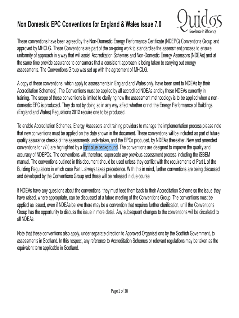 Get the free Non Domestic EPC Conventions for England & Wales Issue 7.1 - quidos co