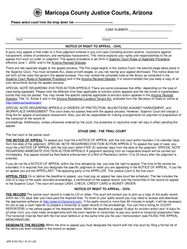 Get the free APPEAL A CIVIL JUDGMENT - justicecourts maricopa