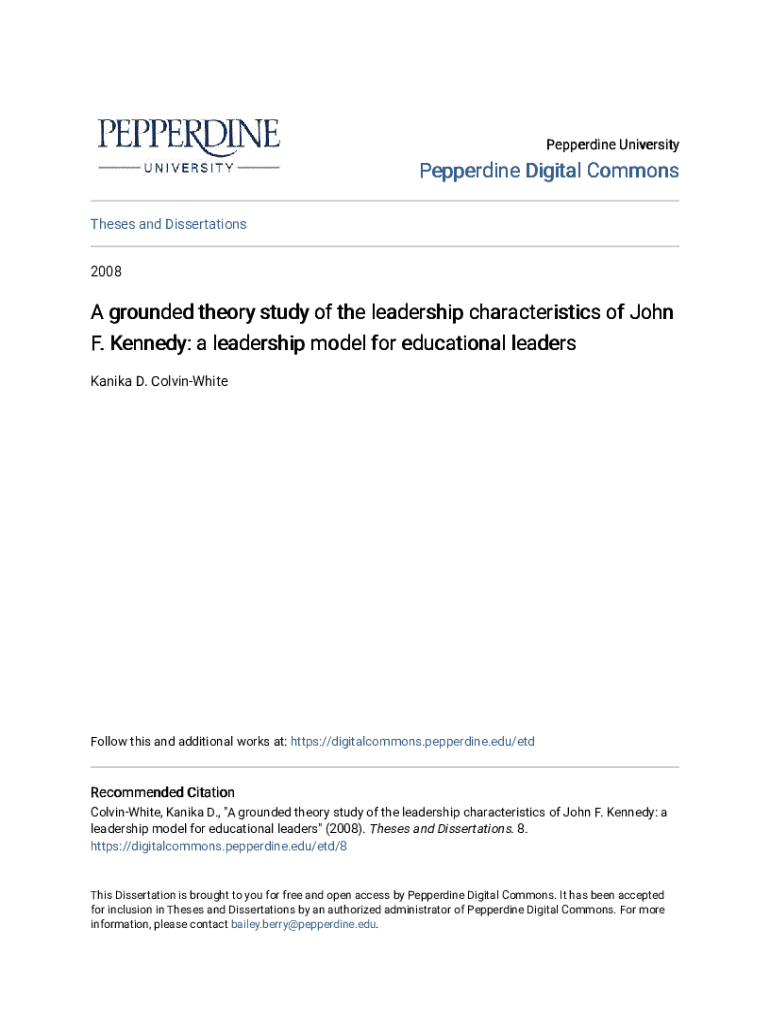 Get the free A grounded theory study of the leadership characteristics of John F ...