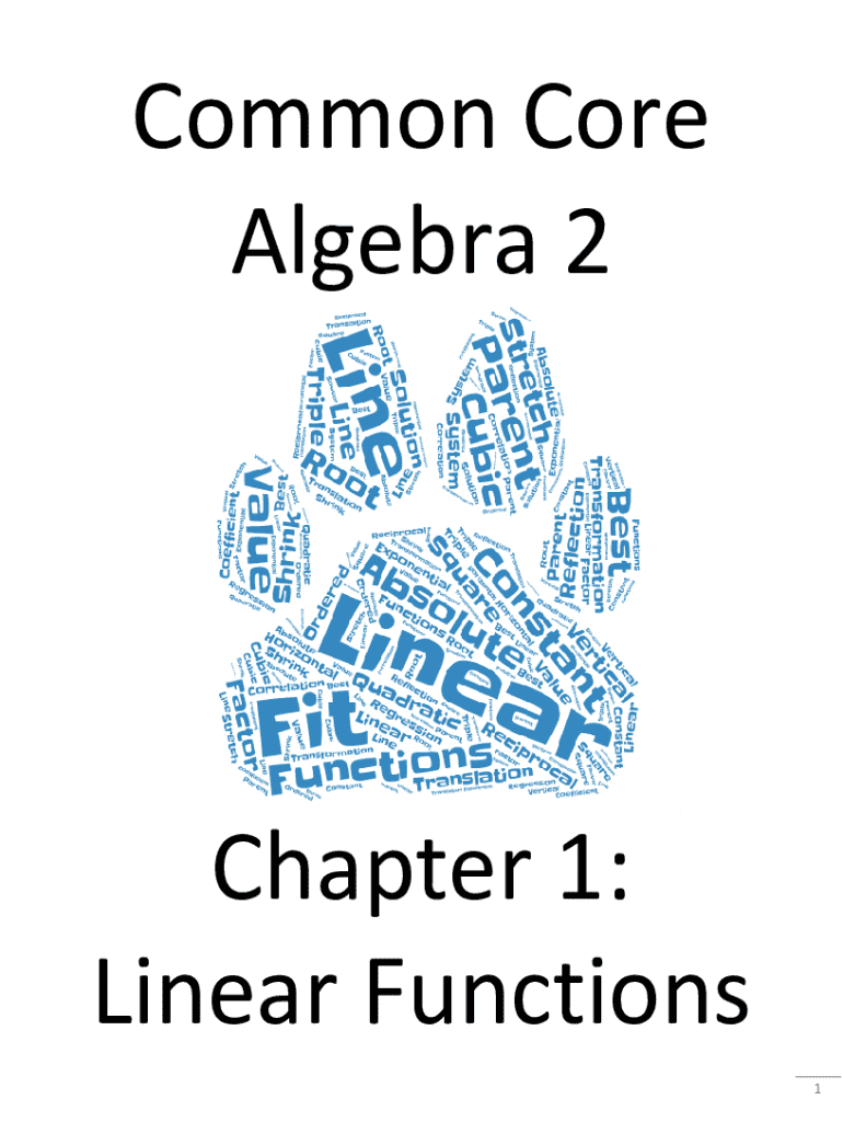 Common Core Algebra 2Chapter 1: Linear Functions 11.1 Parent Functions and Transformations Essential Question: What are the characteristics of some basic parent functions? What You Will Learn To identify