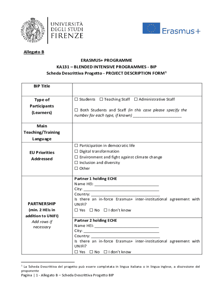 Blended intensive programmes should be filled out according to the guidelines provided by the regulatory agency.