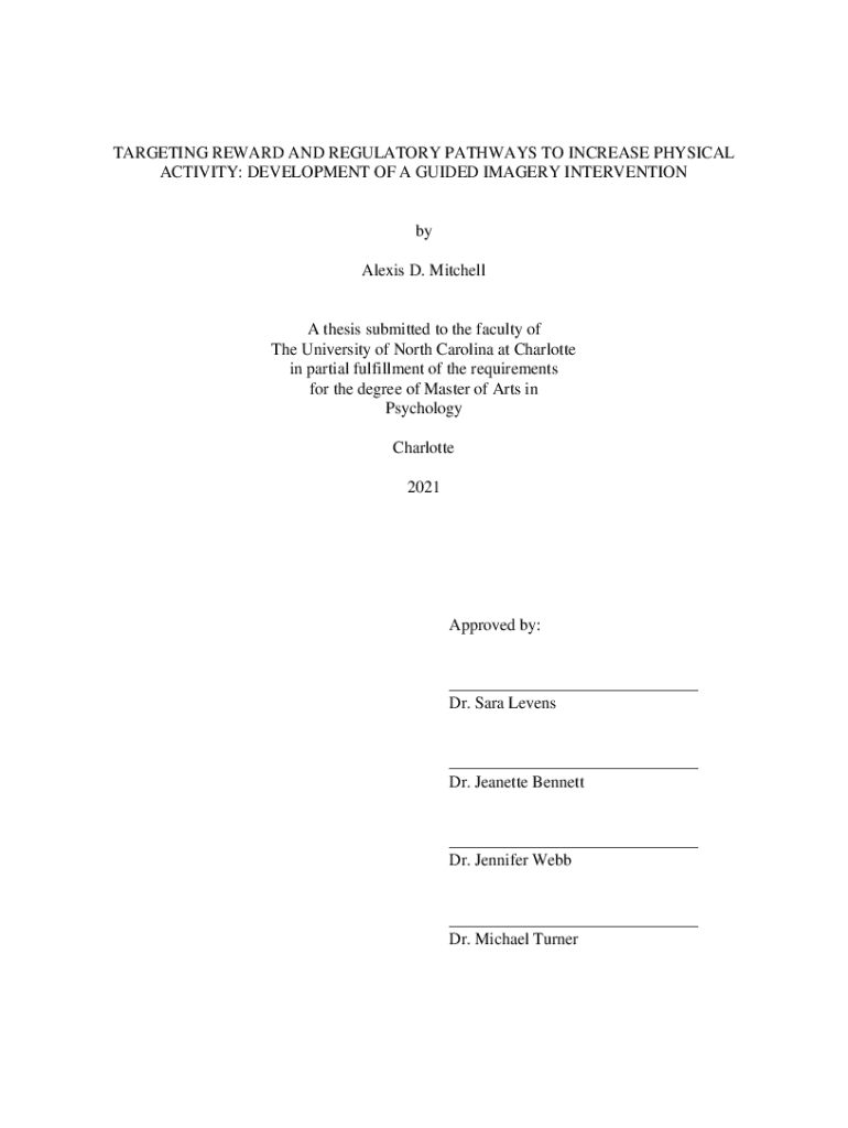 TARGETING REWARD AND REGULATORY PATHWAYS TO INCREASE PHYSICAL ACTIVITY: DEVELOPMENT OF A GUIDED IMAGERY INTERVENTION by Alexis D. Mitchell thesis submitted to the faculty of The University of North
