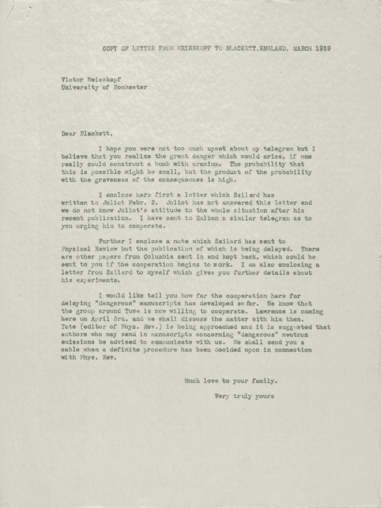 COPY Q\'!i\' LETTER PROJEISSKOPF TO BLACKEST. ENGLAND,CH1939Victor asked