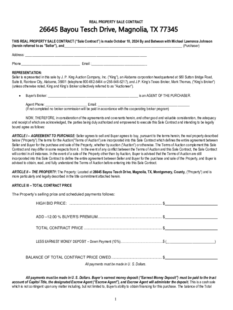 REAL PROPERTY SALE CONTRACT26645 Bayou Tesch Drive, Magnolia, TX 77345 THIS REAL PROPERTY SALE CONTRACT (Sale Contract) is made October 10, 2024 By and Between with Michael Lawrence Johnson (herein