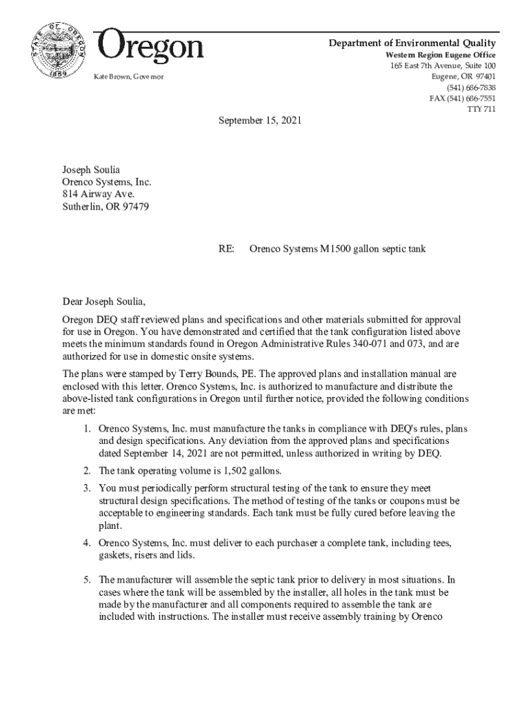 Kate Brown, Governor September 15, 2021Western Region Eugene Office