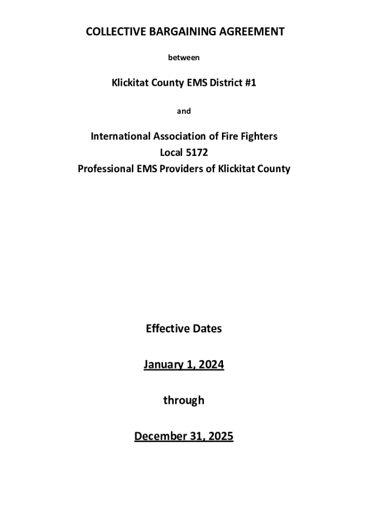 COLLECTIVE BARGAINING AGREEMENT betweenKlickitat County EMS District #1 andInternational Association of Fire Fighters Local 5172 Professional EMS Providers of Klickitat CountyEffective Dates January