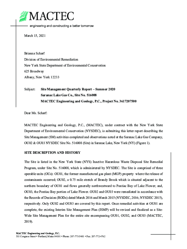 engineering and constructing a better tomorrowMarch 15, 2021Brianna Scharf Division of Environmental Remediation New York State Department of Environmental Conservation 625 Broadway Albany, New York