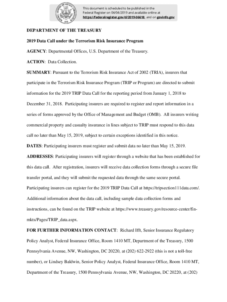 Get the free DEPARTMENT OF THE TREASURY 2019 Data Call under the ...