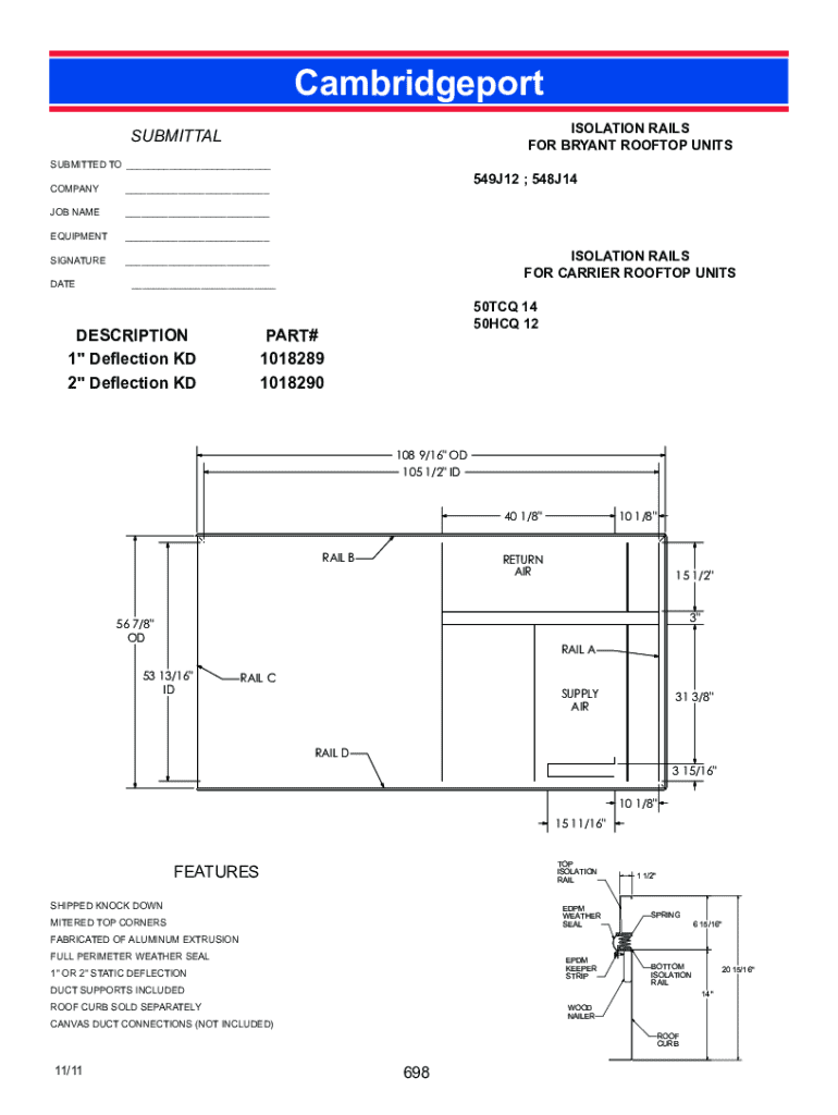 Cambridgeport ISOLATION RAILS FOR BRYANT ROOFTOP UNITSSUBMITTAL SUBMITTED TO ___ COMPANY___JOB NAME___EQUIPMENT___SIGNATURE___DATE549J12 ; 548J14ISOLATION RAILS FOR CARRIER ROOFTOP UNITS___DESCRIPTION