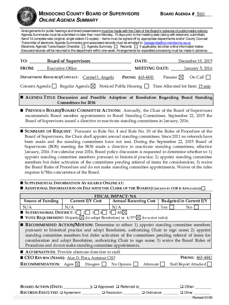 MENDOCINO COUNTY BOARD OF SUPERVISORS ONLINE AGENDA SUMMARYBOARD AGENDA #_5(c)___Arrangements for public hearings and timed presentations must be made with the Clerk of the Board in advance of public/media