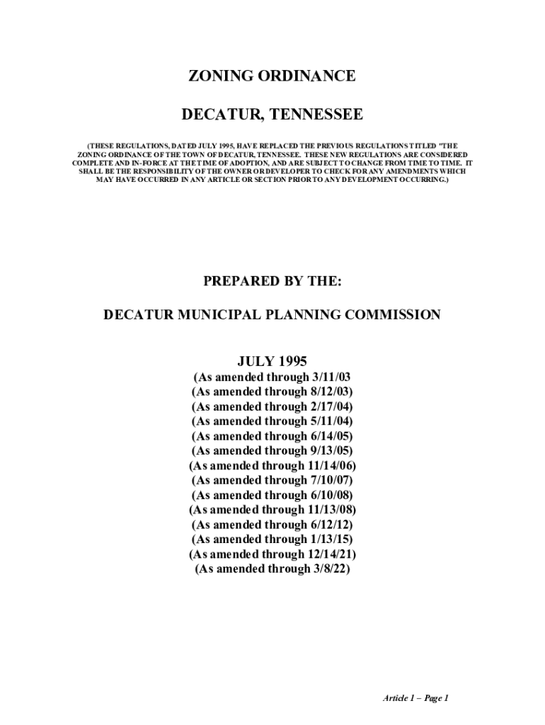 ZONING ORDINANCE DECATUR, TENNESSEE (THESE REGULATIONS, DATED JULY 1995, HAVE REPLACED THE PREVIOUS REGULATIONS TITLED \"THE ZONING ORDINANCE OF THE TOWN OF DECATUR, TENNESSEE. THESE NEW REGULATIONS