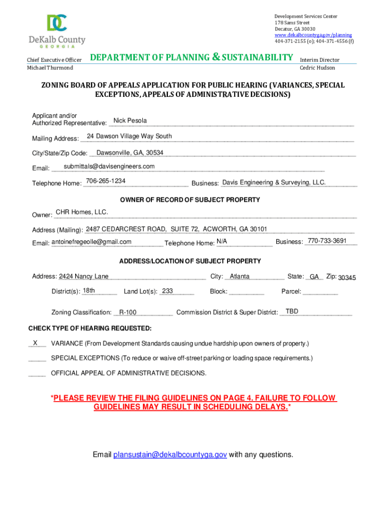 Development Services Center 178 Sam's Street Decatur, GA 30030 www.dekalbcountyga.gov/planning 4043712155 (o); 4043714556 (f)Chief Executive Officer Michael ThurmondDEPARTMENT OF PLANNING & SUSTAINABILITYInterim