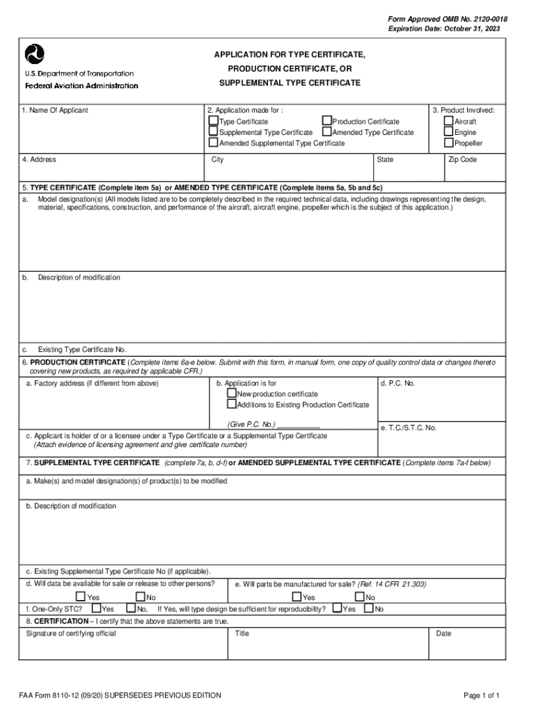 Form Approved OMB No. 21200018 Expiration Date: October 31, 2023INFORMATION FOR APPLICANTPaperwork Reduction Act Statement: A federal agency may not conduct or sponsor, and a person is not required