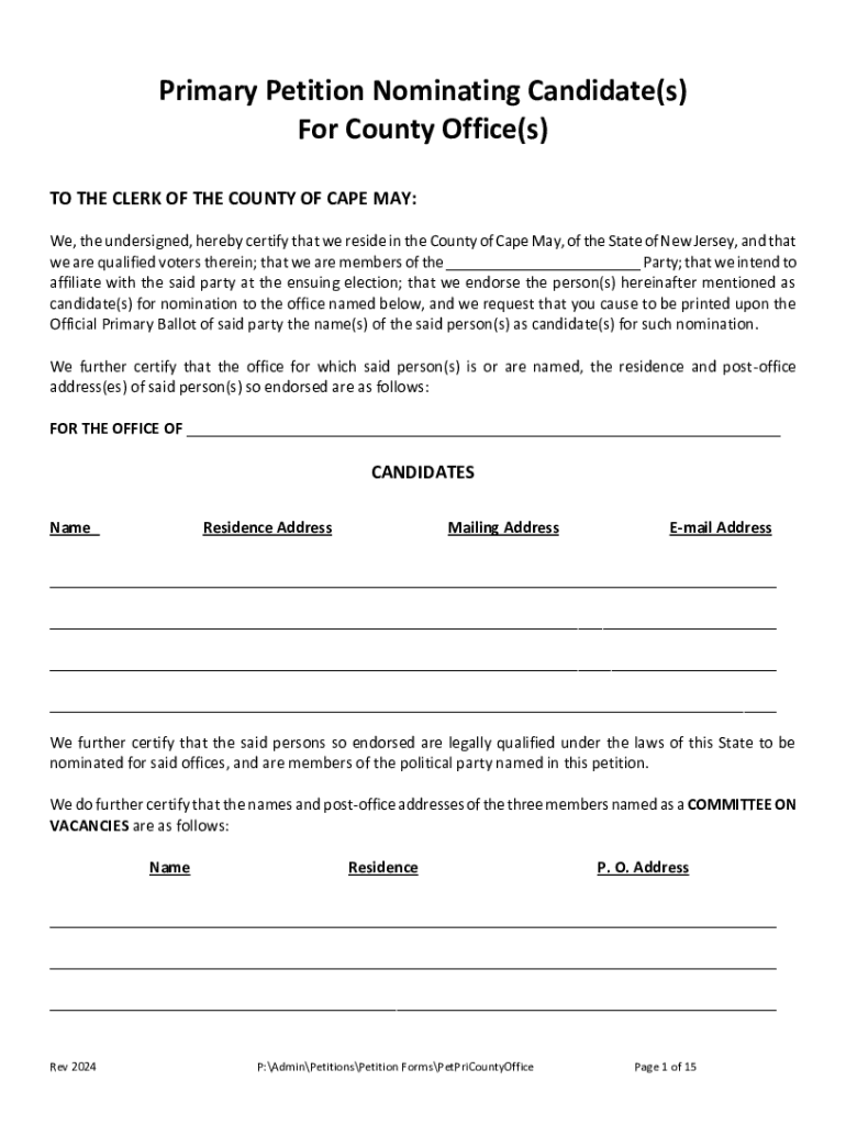 Get the free Primary Petition Nominating Candidate(s) For Municipal ...