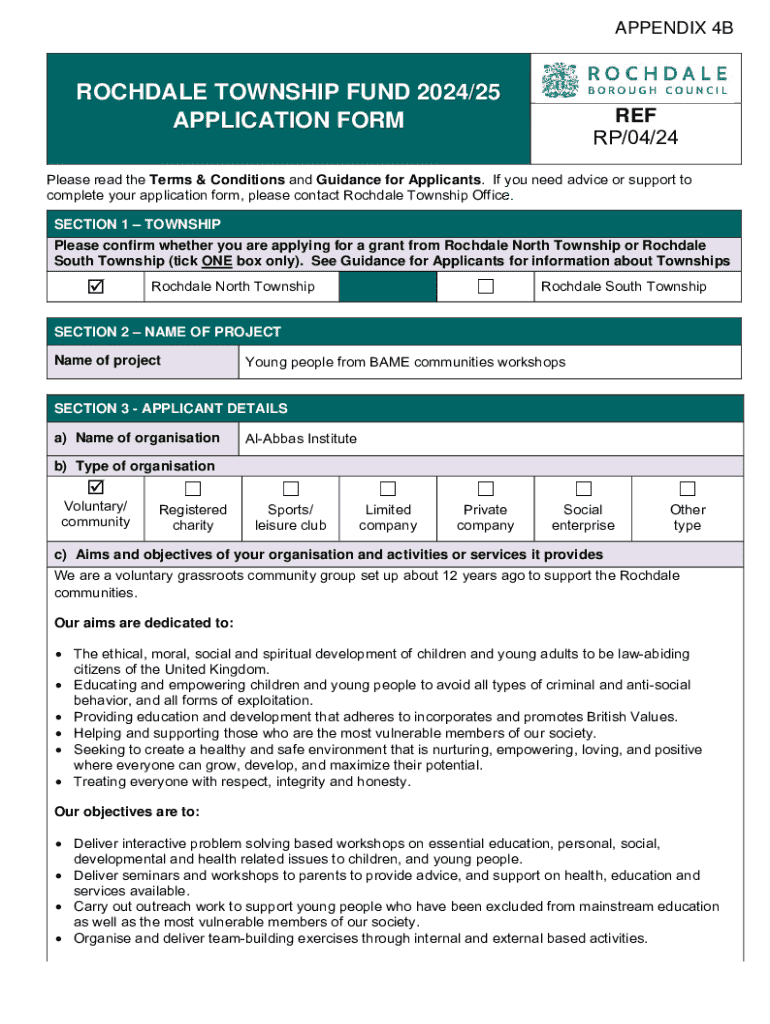 Get the free rochdale township fund 2024/25 application form - democracy rochdale gov