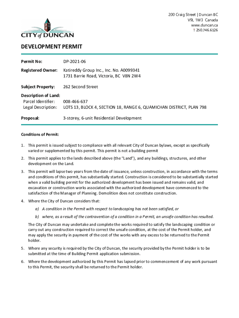 T 250.746.6126DEVELOPMENT PERMIT No:DP202106Registered Owner:Tiredly Group Inc., Inc. No. A0099341