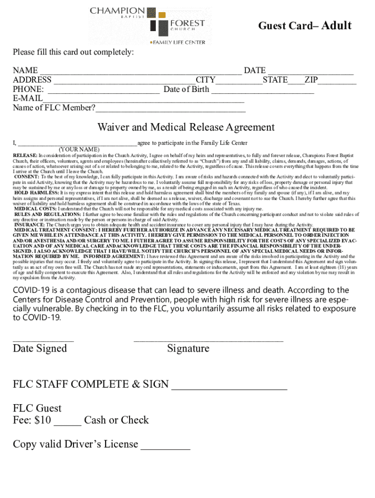 Get the free Guest Card Adult Waiver and Medical Release Agreement