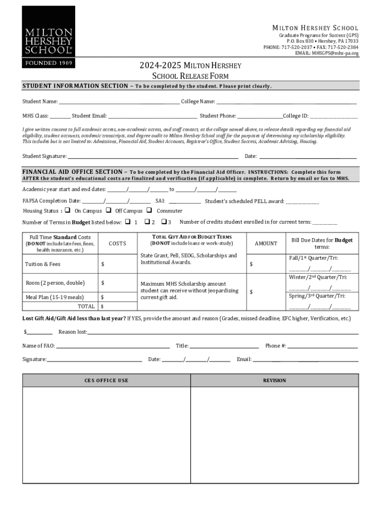 M I LT O N H ER S H EY S CH O O LGraduate Programs for Success (GPS) P.O. Box 830 Hershey, PA 17033 PHONE: 7175202037 FAX: 7175202384 EMAIL: MHSGPS@mhspa.org20242025 MILTON HERSHEY SCHOOL RELEASE