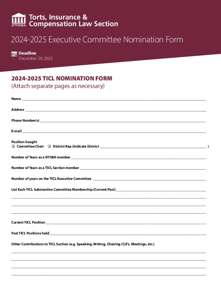Compensation Law Section20242025 Executive Committee Nomination Form