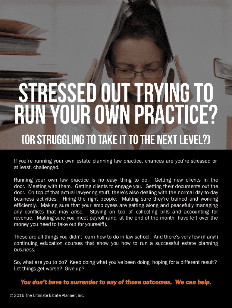 If youre running your own estate planning law practice, chances are youre stressed or, at least, challenged. Running your own law practice is no easy thing to do. Getting new clients in the door.