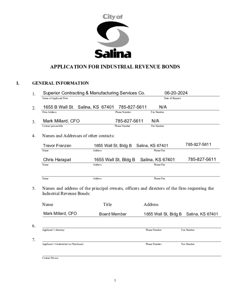 1. Superior Contracting & Manufacturing Services Co.06202024Name of Applicant Firm2. Date of Request1655 B Wall St. Salina, KS 67401