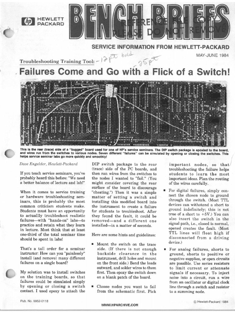 HEWLETT PACKARDi; SERVICE INFORMATION FROM HEWLETPACKARD r_Troubleshooting Training Tool: e)fh*. /... f1 IlMAYJUNE 1984qc,Failures Come and Go with a Flick of a Switch!rThis is the rear (trace) side