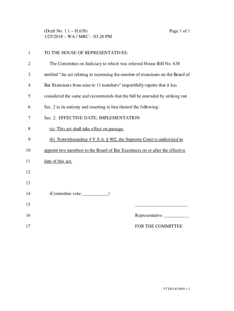(Draft No. 1.1 H.638) 1/25/2018 WA / MRC 03:26 PM1 2Page 1 of 1TO THE HOUSE OF REPRESENTATIVES: The Committee on Judiciary to which was referred House Bill No. 6383entitled An act relating to increasing