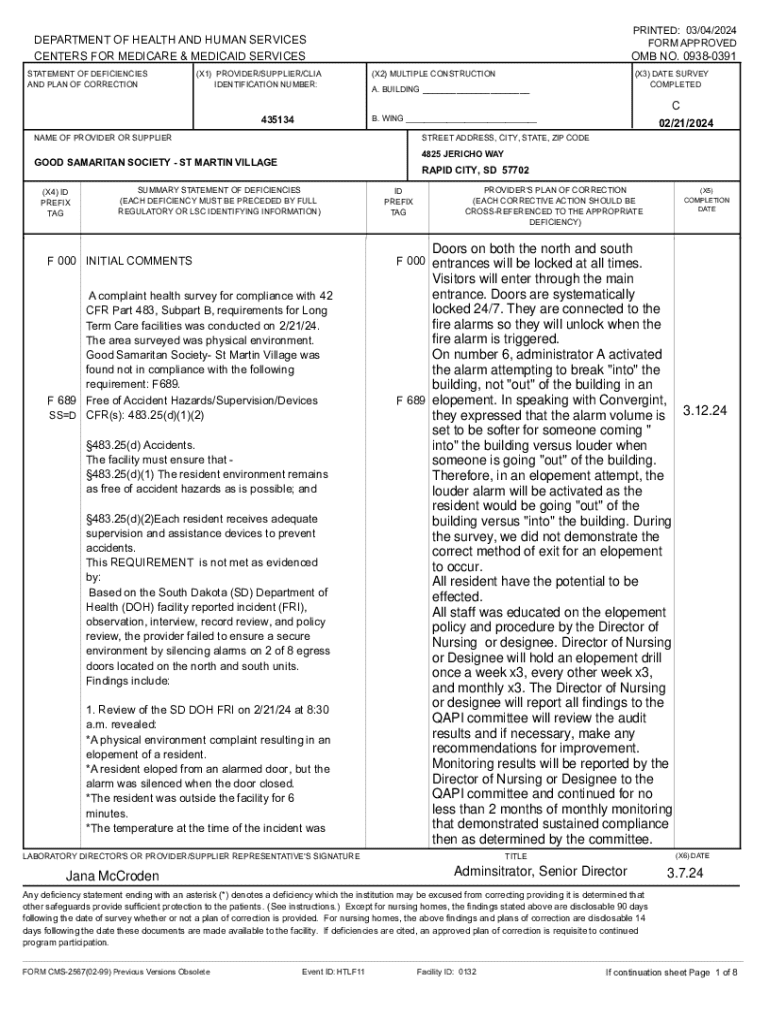 AND PLAN OF CORRECTION(X1) PROVIDER/SUPPLIER/CIA