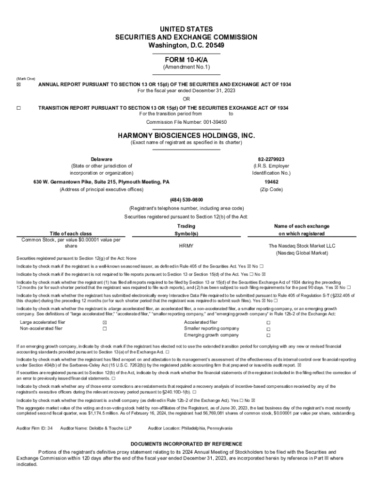 As a publicly traded company, Harmony Biosciences Holdings Inc is required to file various reports with the Securities and Exchange Commission (SEC).