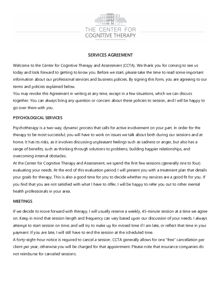 Get the free SERVICES AGREEMENT - The Center for Cognitive Therapy