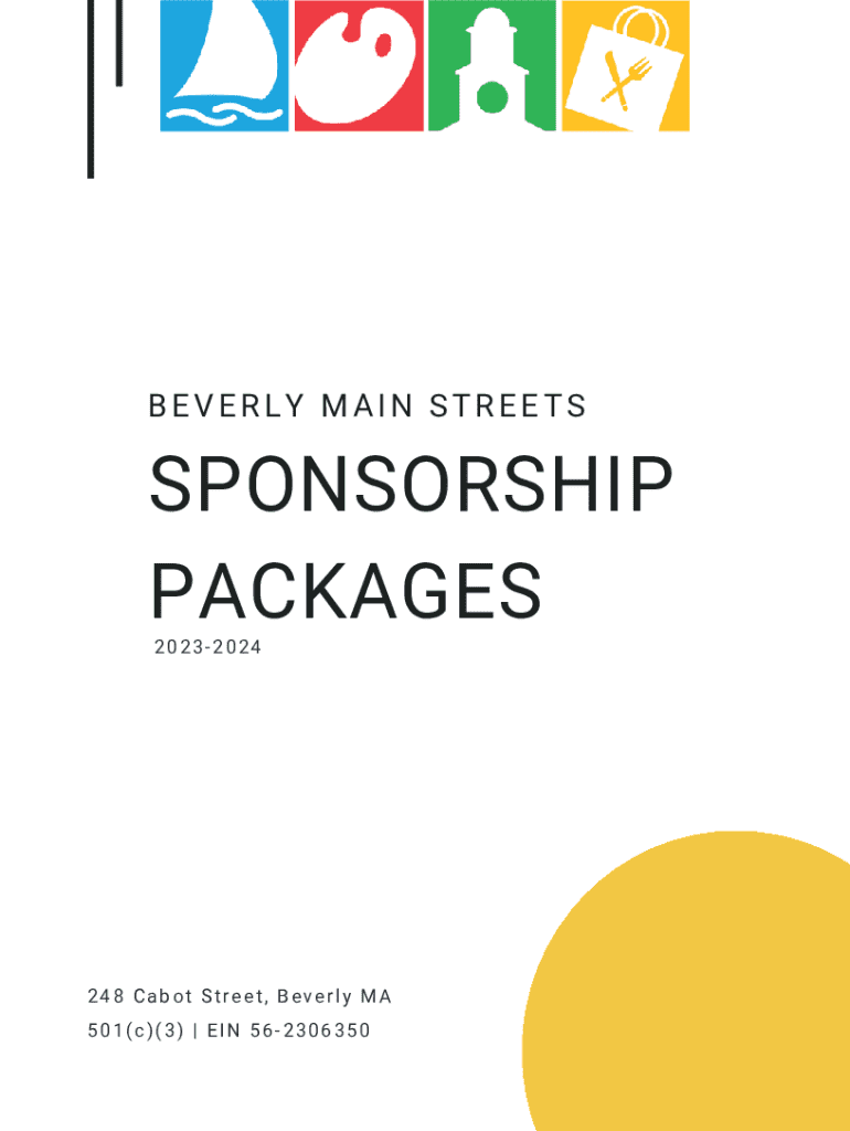 BEVERLY MAIN STREETSSPONSORSHIP PACKAGES 20232024248 Cabot Street, Beverly MA 501(c)(3) | EIN 562306350About UsWe\'re on a mission! Beverly Main Streets is a 501(c)(3) nonprofit organization started