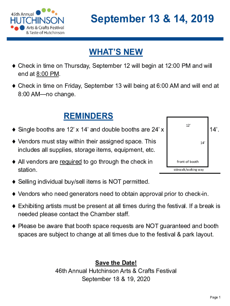 September 13 & 14, 2019 WHATS NEW Check in time on Thursday, September 12 will begin at 12:00 PM and will end at 8:00 PM.Check in time on Friday, September 13 will being at 6:00 AM and will end at
