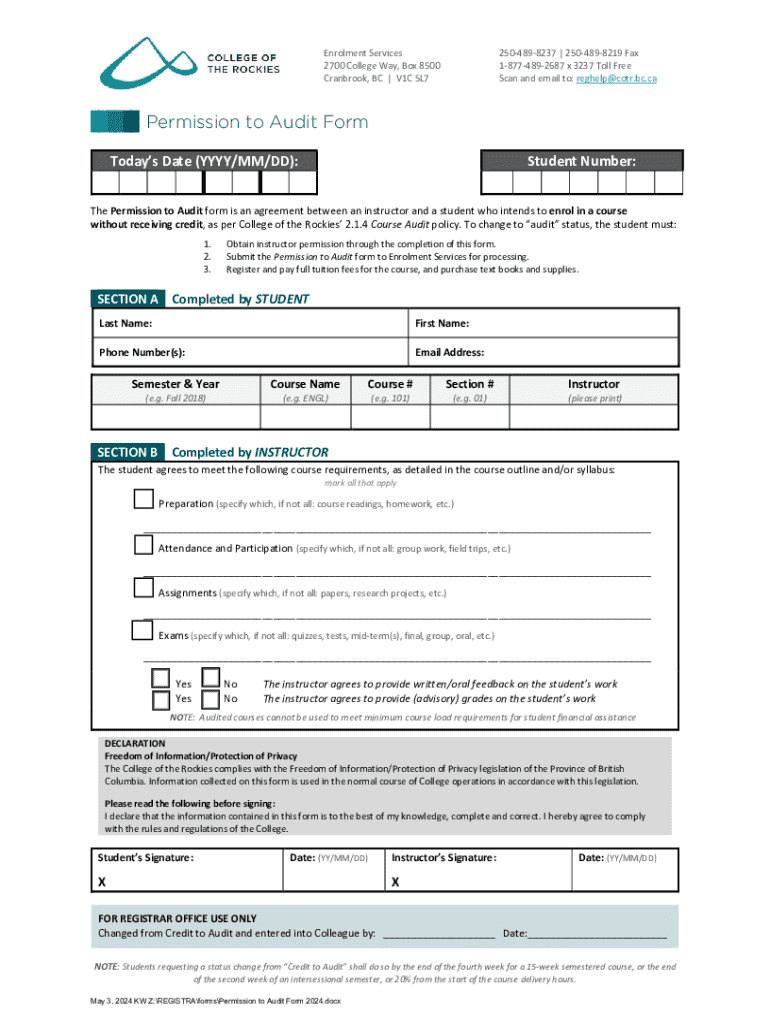 Scan and email to: reghelp@cotr.bc.caPermission to Audit Form