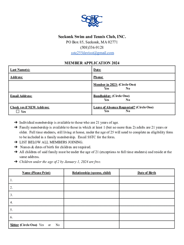 To fill out Seekonk Swimming and Tennis forms, members must provide accurate information about their activities and usage of the facility.