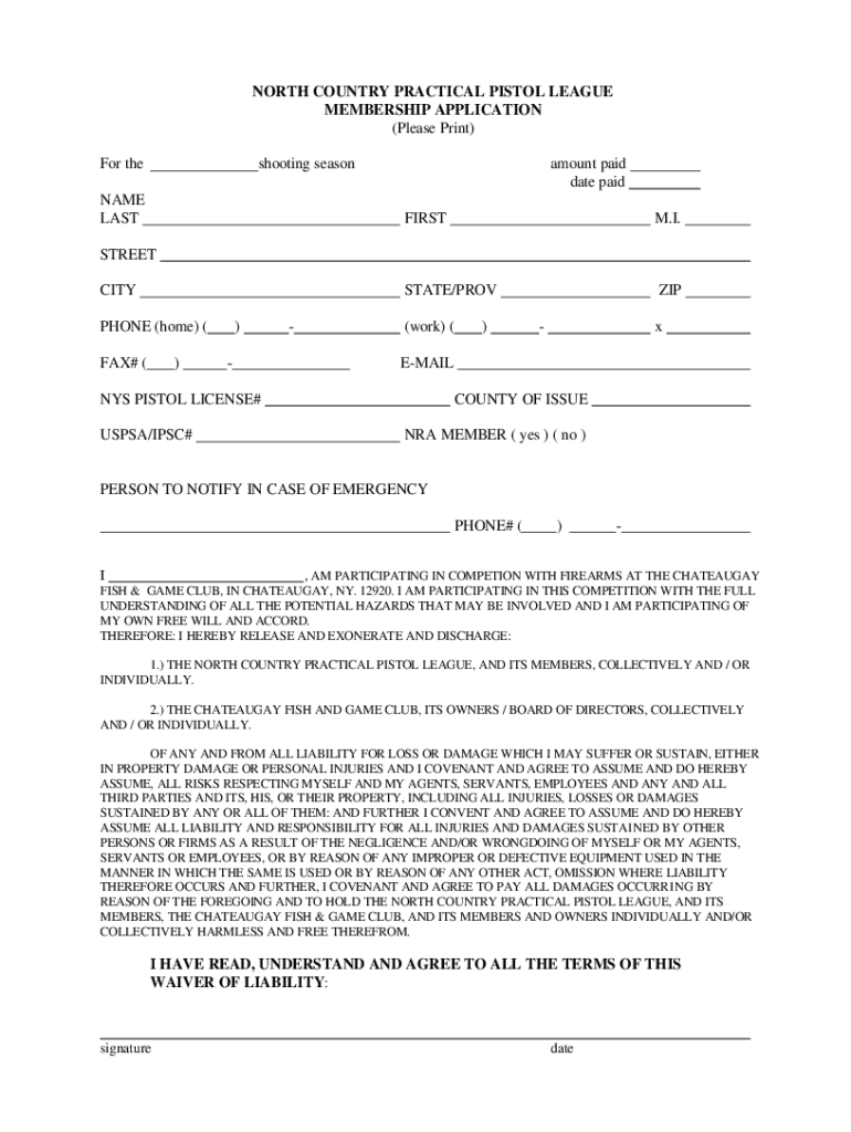 Get the free north country practical pistol league membership application