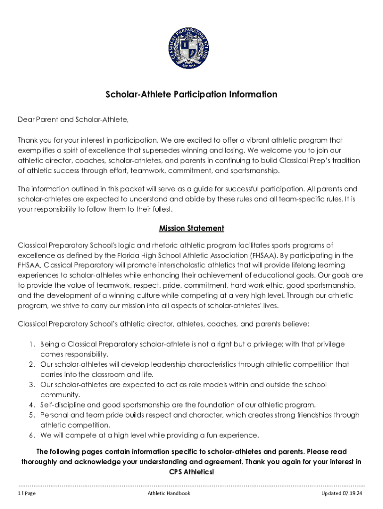 ScholarAthlete Participation Information Dear Parent and ScholarAthlete, Thank you for your interest in participation. We are excited to offer a vibrant athletic program that exemplifies a spirit