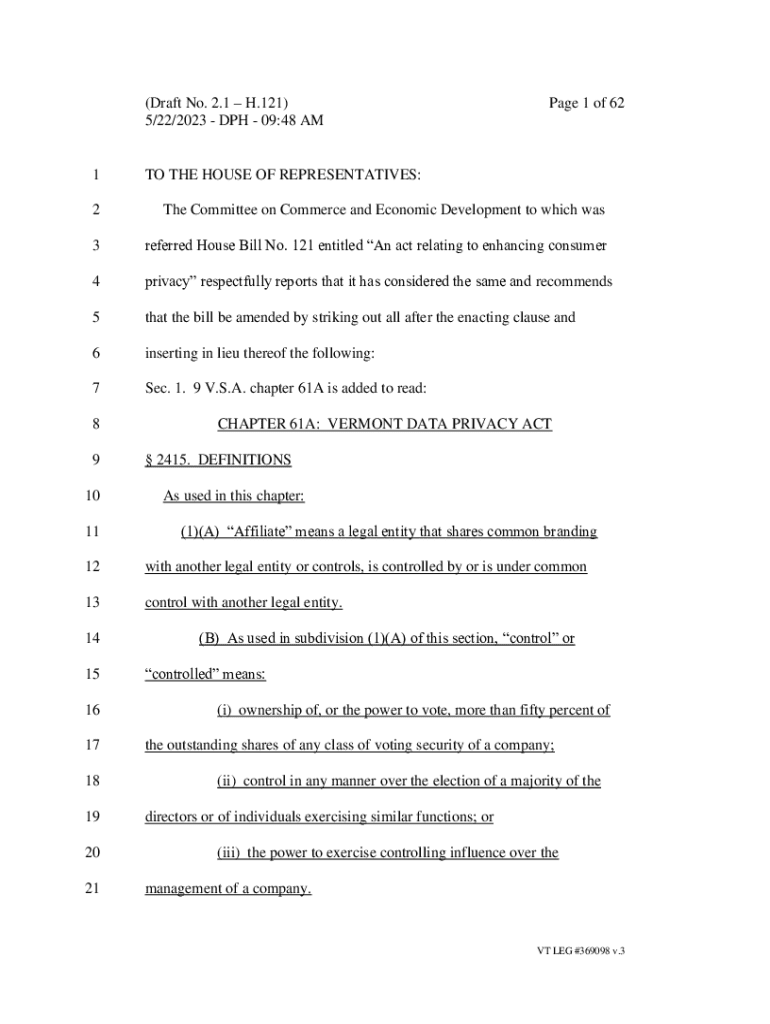 (Draft No. 2.1 H.121) 5/22/2023 DPH 09:48 AM1Page 1 of 62TO THE HOUSE OF REPRESENTATIVES:2The Committee on Commerce and Economic Development to which was3referred House Bill No. 121 entitled An act