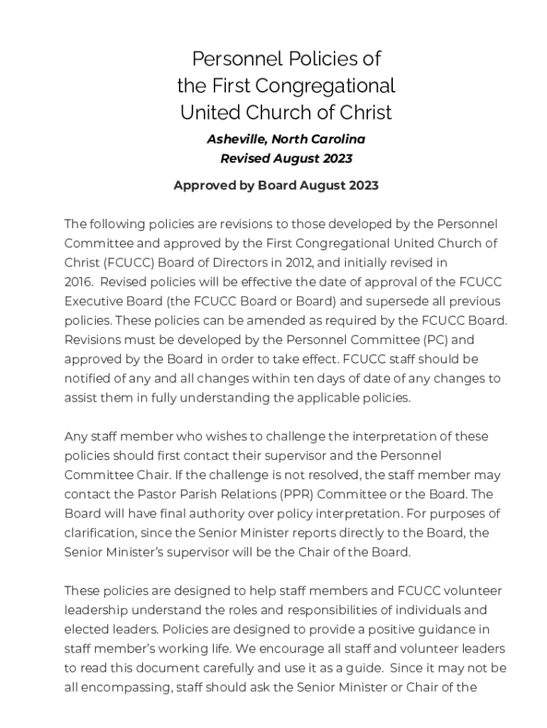 Get the free Personnel Policies of the First Congregational United Church of Christ