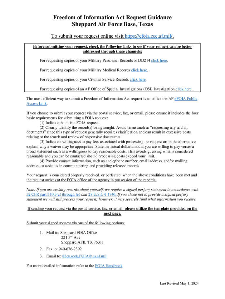 Get the free Freedom of Information Act Request Guidance Sheppard Air ...
