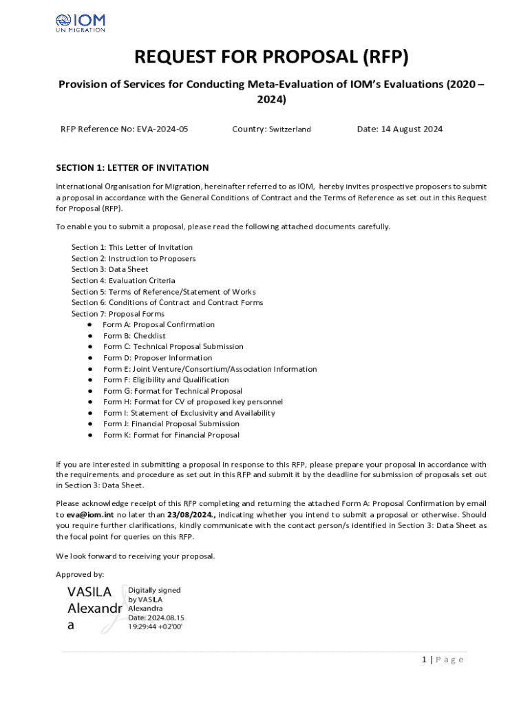 REQUEST FOR PROPOSAL (RFP) Provision of Services for Conducting Reevaluation of Ions Evaluations (2020 2024) RFP Reference No: EVA202405Country: SwitzerlandDate: 14 August 2024SECTION 1: LETTER OF