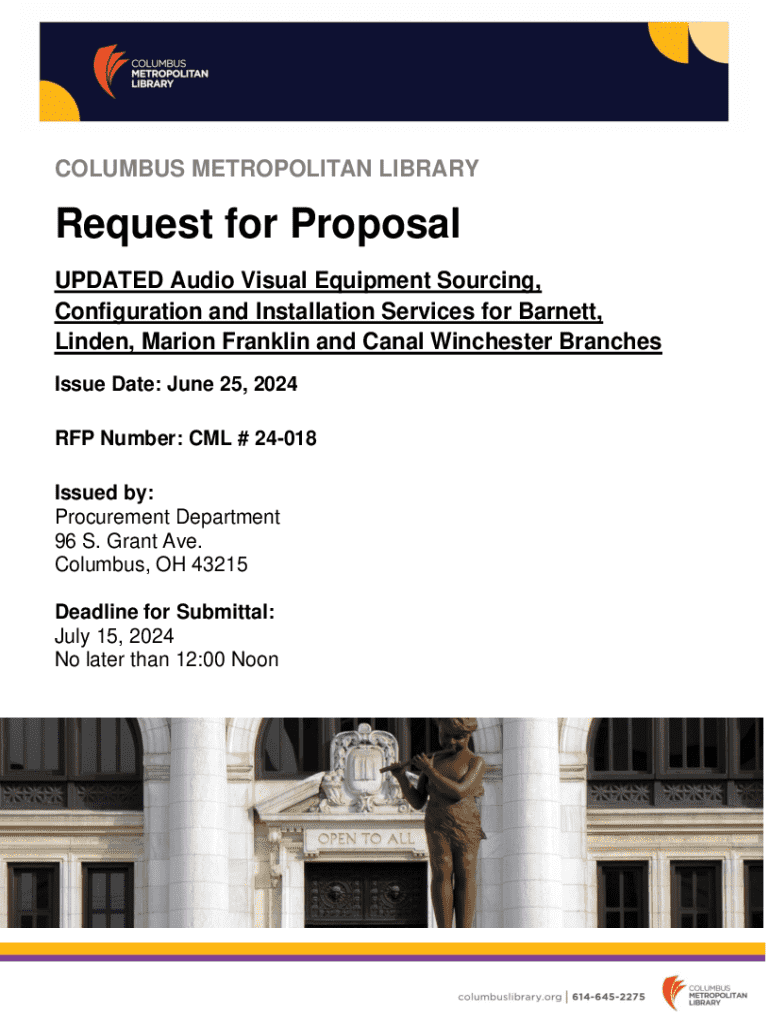 COLUMBUS METROPOLITAN LIBRARYRequest for Proposal UPDATED Audio Visual Equipment Sourcing, Configuration and Installation Services for Barnett, Linden, Marion Franklin and Canal Winchester Branches