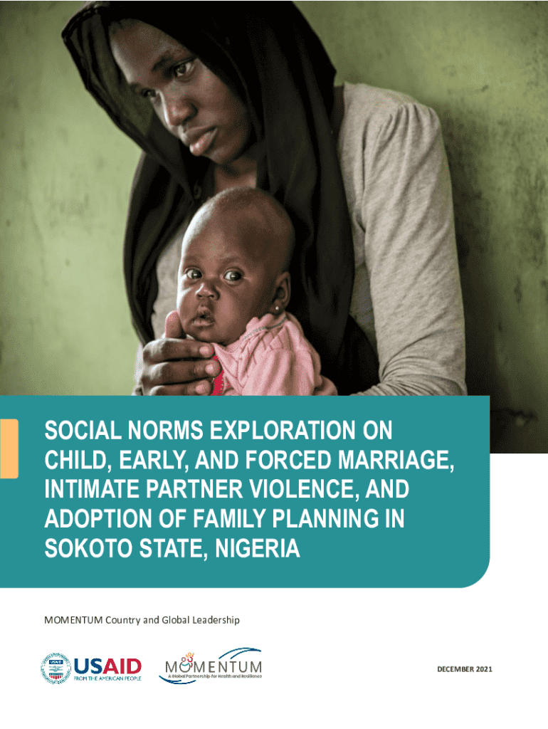 SOCIAL NORMS EXPLORATION ON CHILD, EARLY, AND FORCED MARRIAGE, INTIMATE PARTNER VIOLENCE, AND ADOPTION OF FAMILY PLANNING IN SOKOTO STATE, NIGERIA MOMENTUM Country and Global LeadershipDECEMBER 2021MOMENTUM