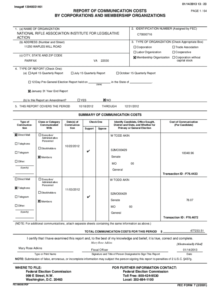 01/14/2013 13 : 23Image# 13940031461REPORT OF COMMUNICATION COSTS