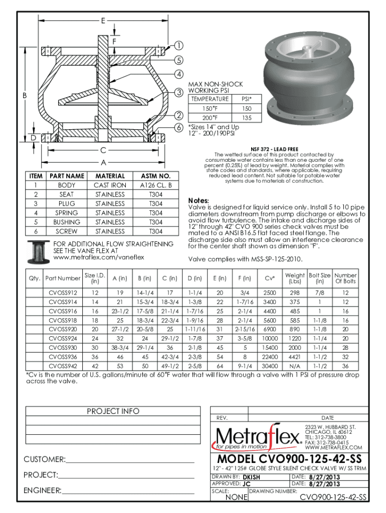 E F1 5 4 MAX NONSHOCK3 WORKING PSIBTEMPERATUREPSI*150 F150200 F1352 6 D*Sizes 14\" and Up 12\" 200/190PSICNSF 372 LEAD FREE The wetted surface of this product contacted by consumable water contains