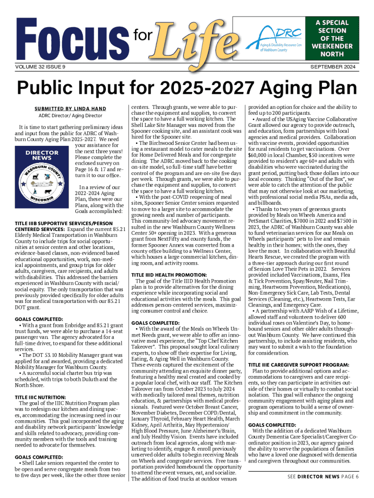 SEPTEMBER 2024Public Input for 20252027 Aging Plan