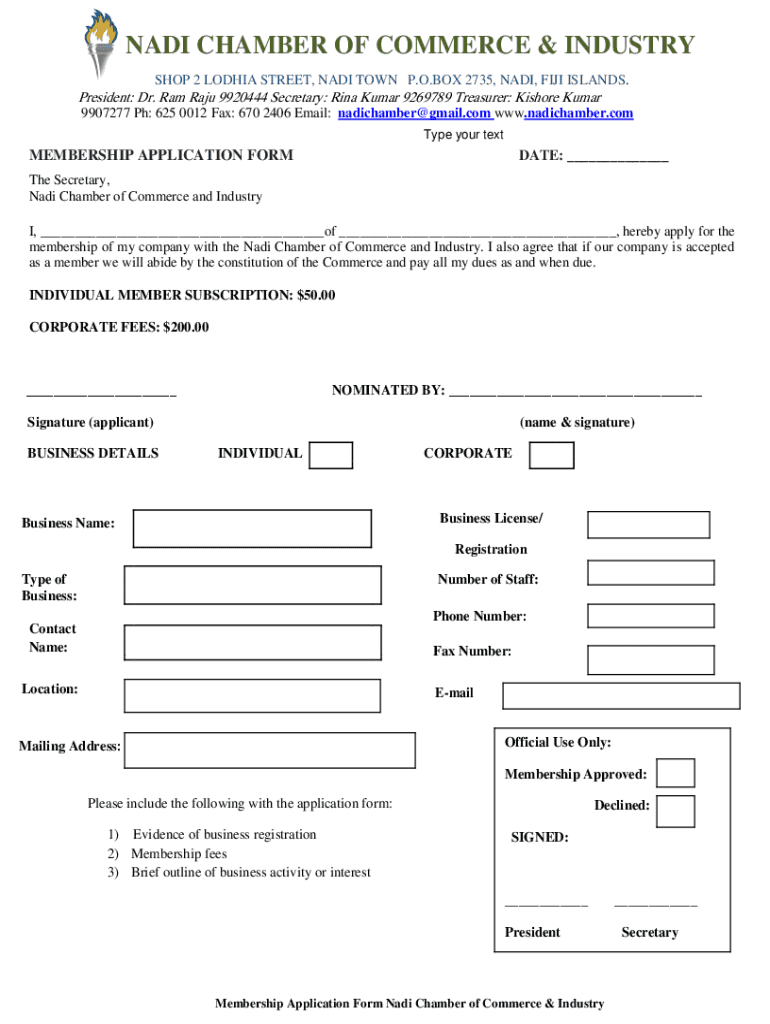 Get the free NADI CHAMBER OF COMMERCE & INDUSTRY