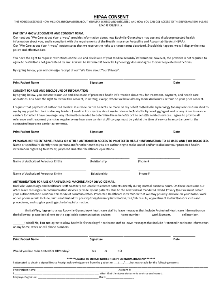 HIPAA CONSENTS NOTICE DESCRIBES HOW MEDICAL INFORMATION ABOUT YOU MAY BE USED AND DISCLOSED AND HOW YOU CAN GET ACCESS TO THIS INFORMATION. PLEASE
